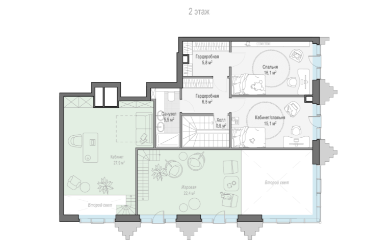 "Tishinsky Boulevard" offers a wide variety of functional layouts that have been meticulously designed: a broad selection of apartments with ceiling heights increased to 7.65 meters; penthouses with terraces, wood-burning fireplaces, and ceiling heights of up to 8.25 meters; apartments with double-height spaces and the option to expand by building a second floor; High Level apartments on the penultimate floor that allow for the installation of a wood-burning fireplace. Special attention is given to apartments with panoramic windows, individual balconies, and mullioned glazing, providing maximum light and the best views of the city center and a picturesque park. The collection is complemented by apartments with terraces level with the floor.