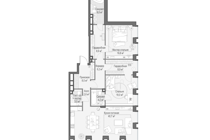 The selection of apartments in Life Time will impress even the most selective and sophisticated individuals. Villas with their own patios, elevators to the parking lot, and rooftop terraces. Four sky villas with spacious open terraces offering breathtaking direct views of Moscow City and the city center. Penthouses with fireplaces and terraces. To maintain maximum privacy, each floor generally contains three spacious apartments.