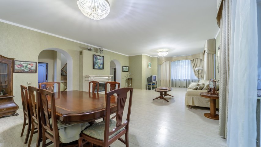 Real Estate Description: The cottage village is located in the Odintsovo district, 19 km from the Moscow Ring Road (MKAD) along the Rublevskoye-Uspenskoye highway, surrounded by picturesque forests. Thanks to the presence of a high-speed road to Moscow, it is possible to reach the city in 15-20 minutes. The village is adjacent to the settlements of Znamenskoye, Bolshoye, and Maloye Sareevo. The village's history dates back to the 1920s when the Soviet government began searching for territories to accommodate production and grow products for the intelligentsia. The construction of government dachas was also planned. Today, the village is divided into 14 plots of land of 20 acres each, making it cozy and intimate. All houses are built in a uniform style, with central utilities provided. Special attention is given to landscape design, with well-maintained lawns, planted shrubs, and paved roads within the territory. The village is illuminated during the dark hours, with video surveillance cameras and round-the-clock security. The relic pine forest, Moscow River, beaches, and recreational areas blend perfectly with the developed infrastructure of Rublyovka. Nearby, there are shops, restaurants such as "Veterok," "Podmoskovnye Vechera," and "Dvoryanskoe Gnezdo," kindergartens No. 32 and No. 37, Victoria Gymnasium, the sports complex "Katok.Ru," and medical institutions.