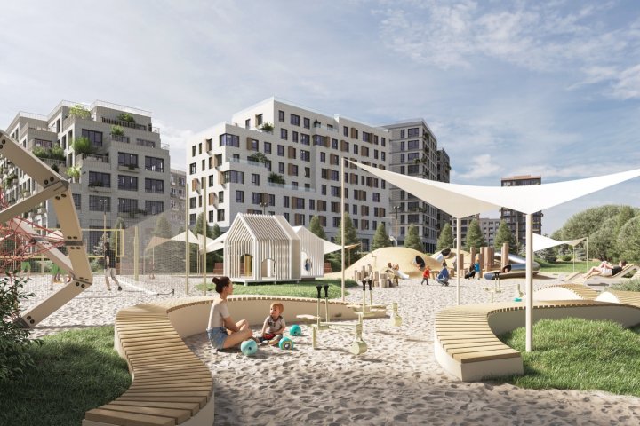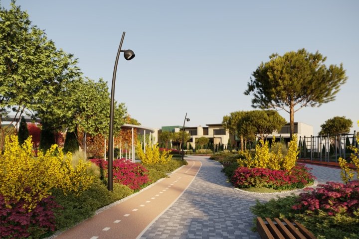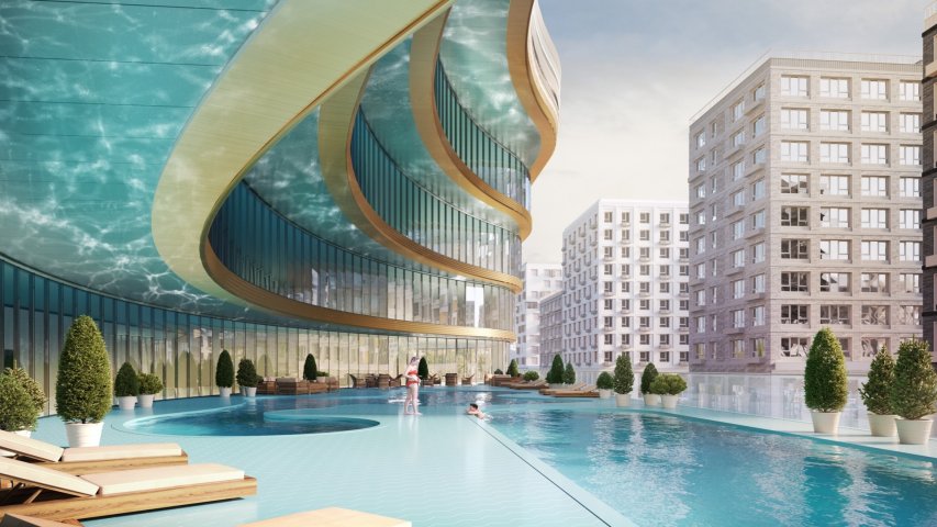 Инфраструктура включает: гастромаркет, кафе, ресторан, общественный центр, зоны барбекю, места для выгула собак, йога-беседку, дворец спорта с фитнес-центром, бассейнами, термальным комплексом. Для детей — игровые площадки, школа и 2 детских сада. Частный парк, набережная и аллеи.
